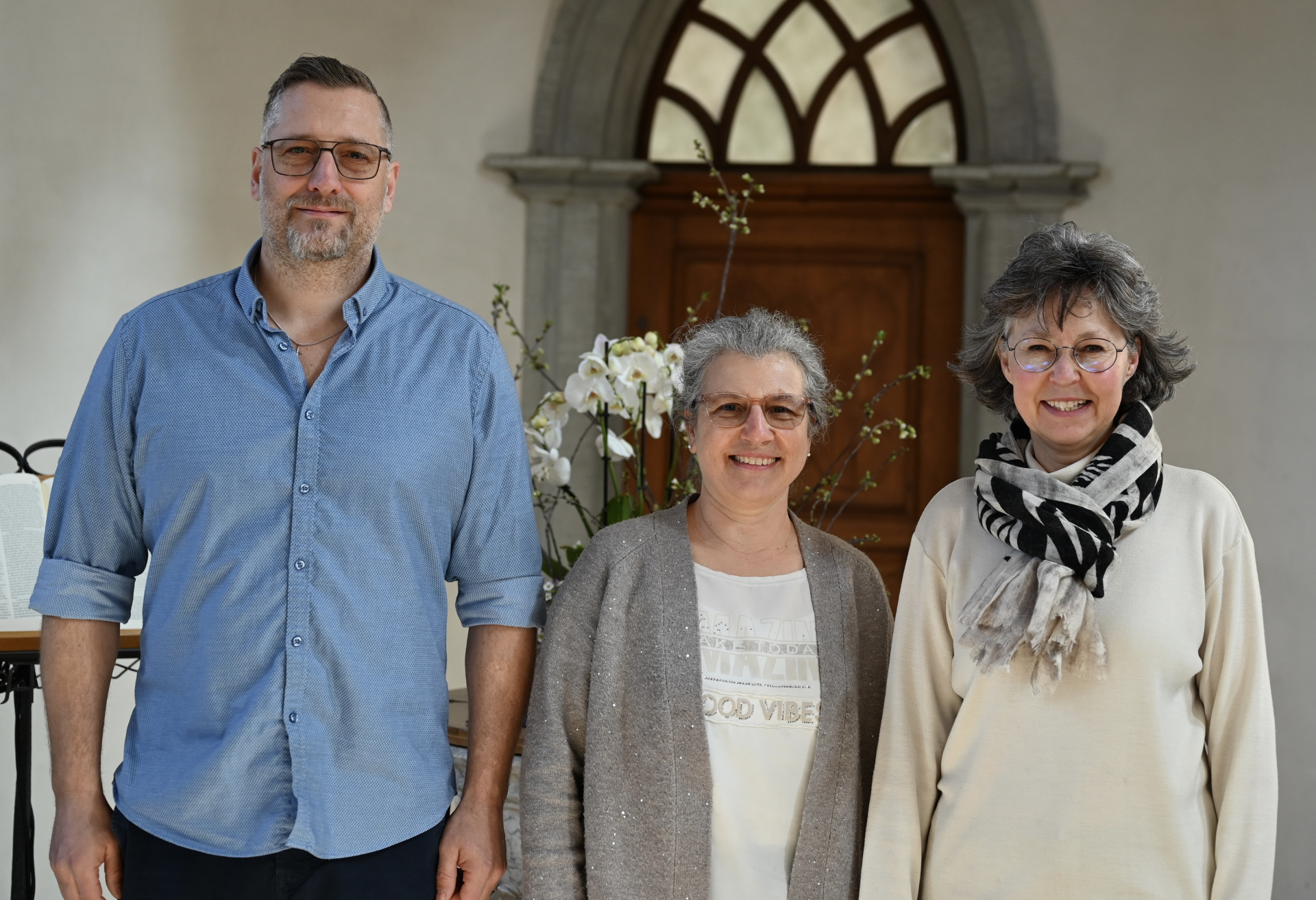 Elisabeth Hörler Schayna (Mitte) als Kirchenpflegerin waren hauptverantwortlich für die bautechnisch und finanziell gelungene Sanierung des Berlinger Kirchturms. Pfarrerin